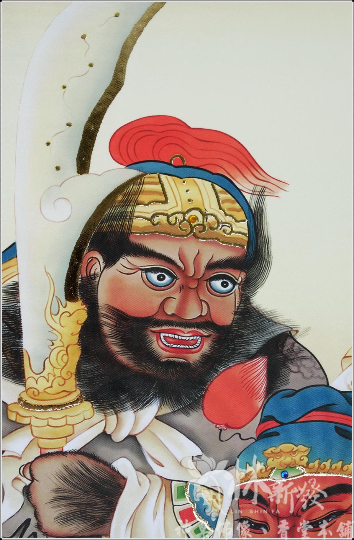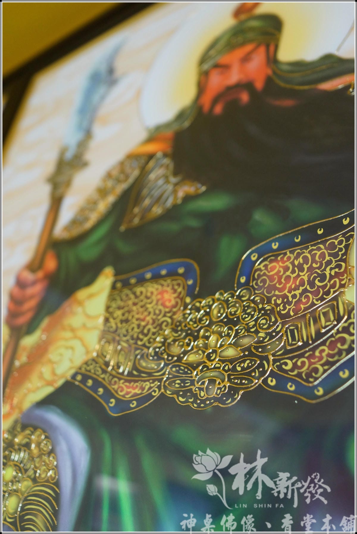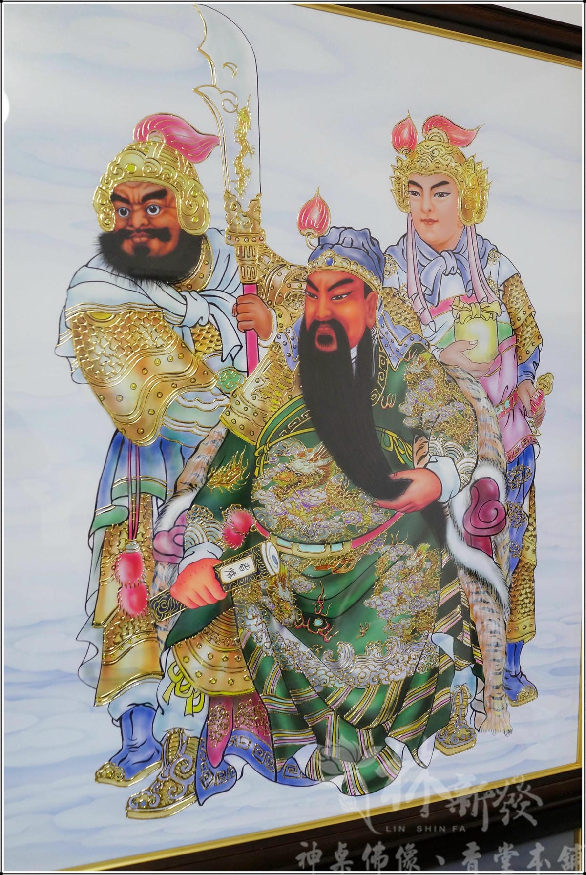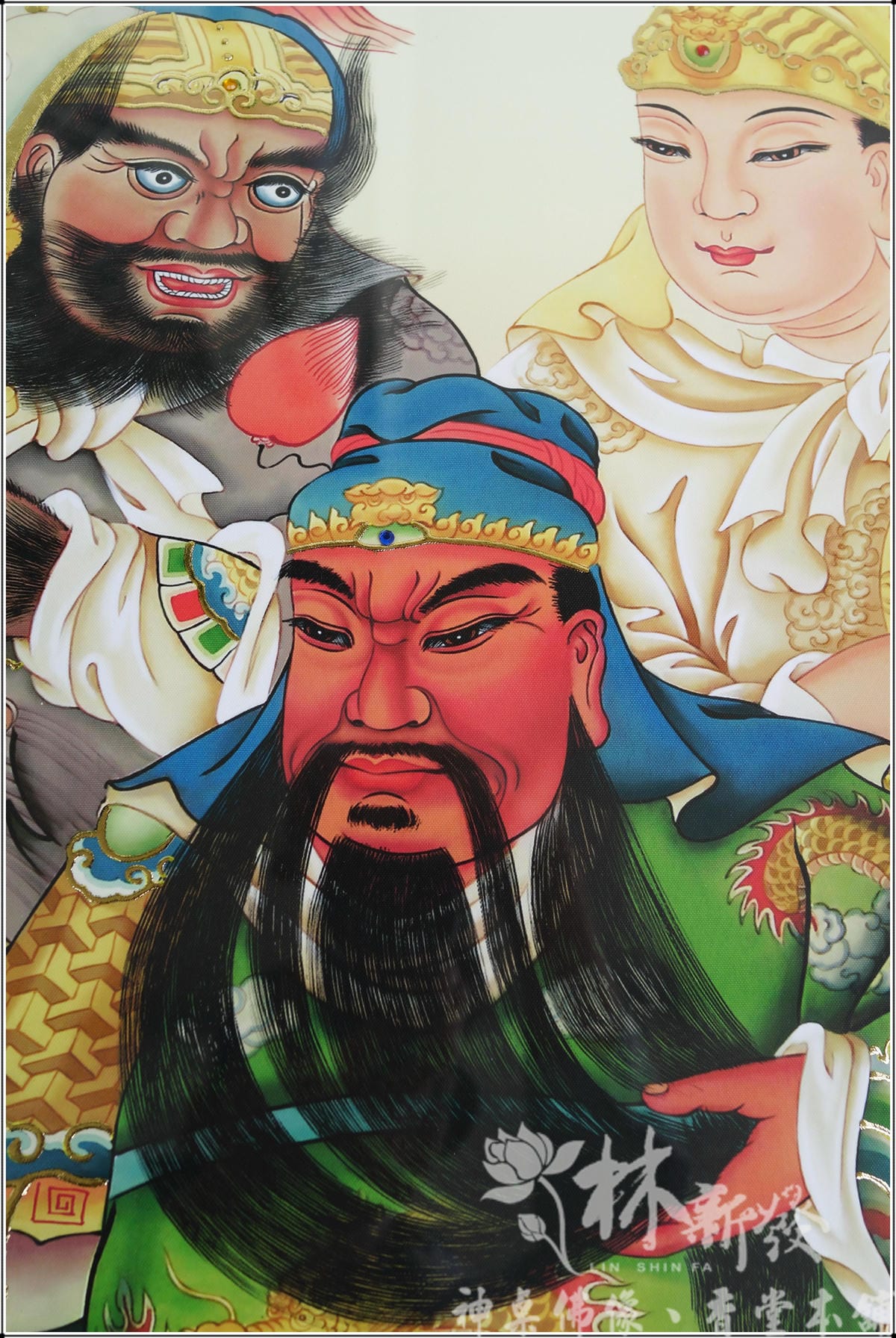 全手工文武體關聖帝君神彩,是林新發的師傅以類油畫風格手工完成的心血結晶