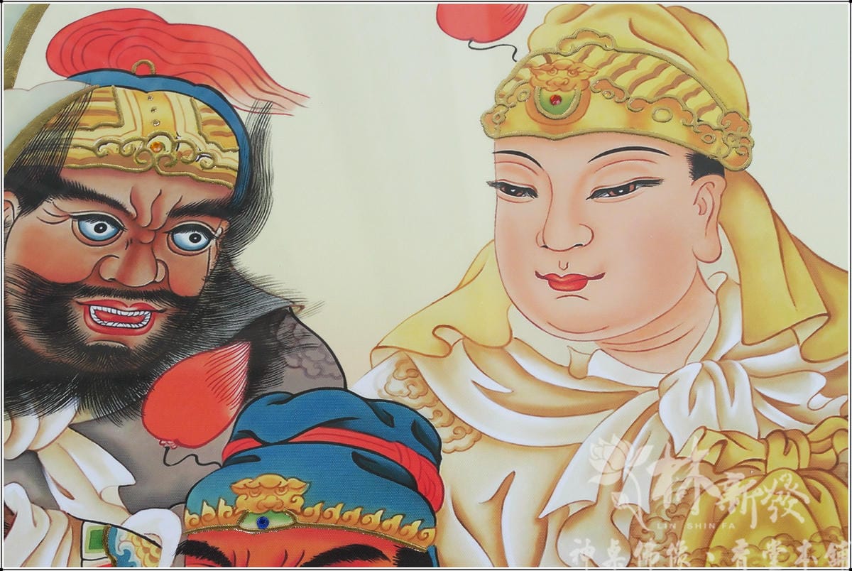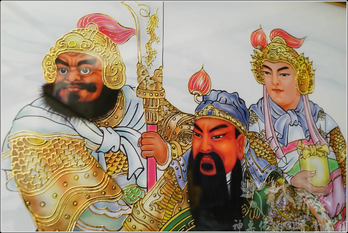 手繪帝君-文武關公.周倉關平/三結義(手繪綢布作品)