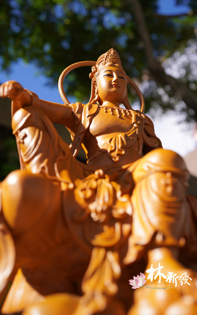 整尊菩薩就像被月光環抱。