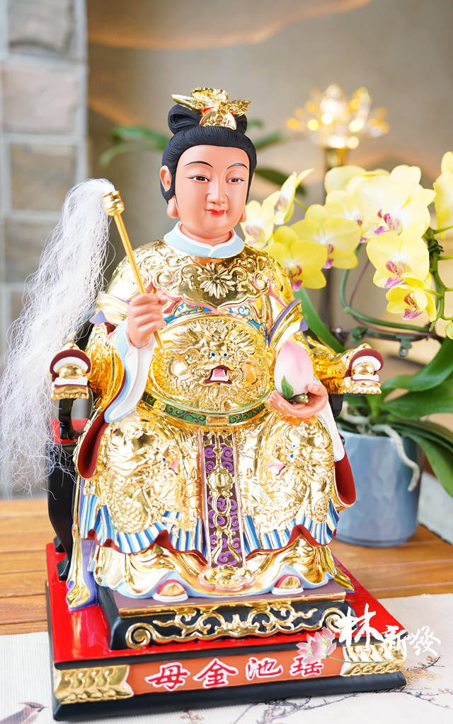 金母手托仙桃,代表賜福眾生、延壽添福。
